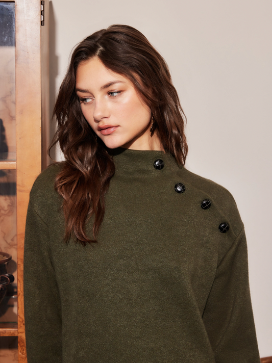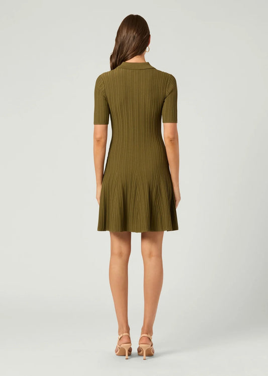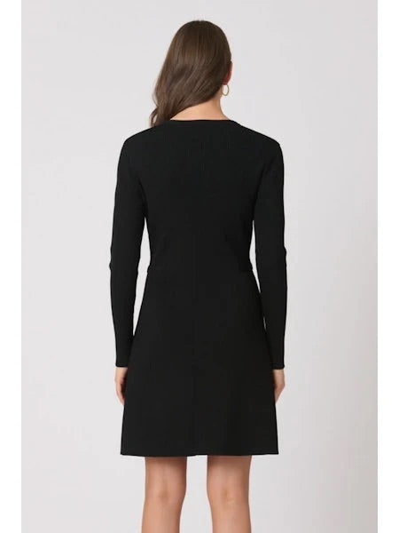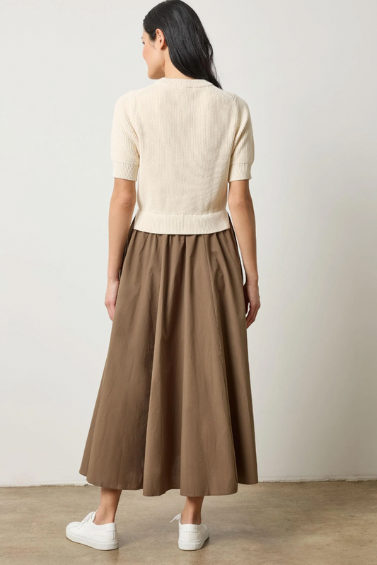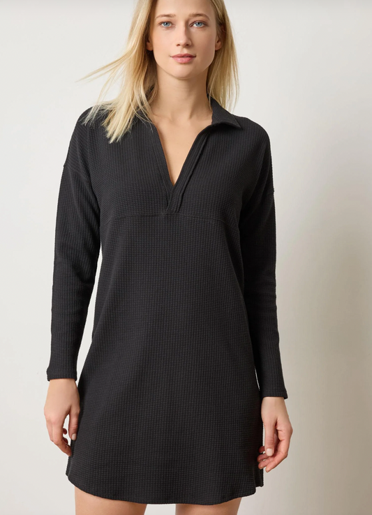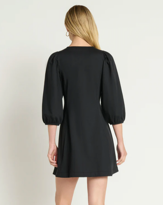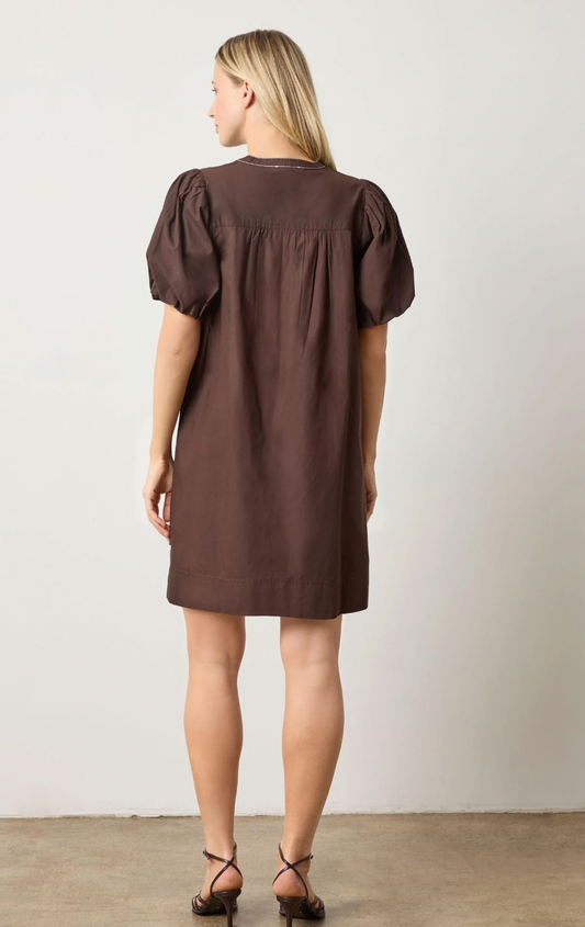 SHIRRED SLEEVE SPLIT NECK DRESS