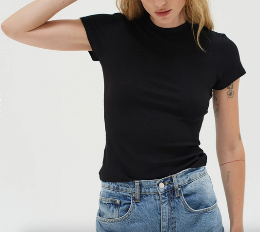 FITTED COTTON RIBBED CREW TEE