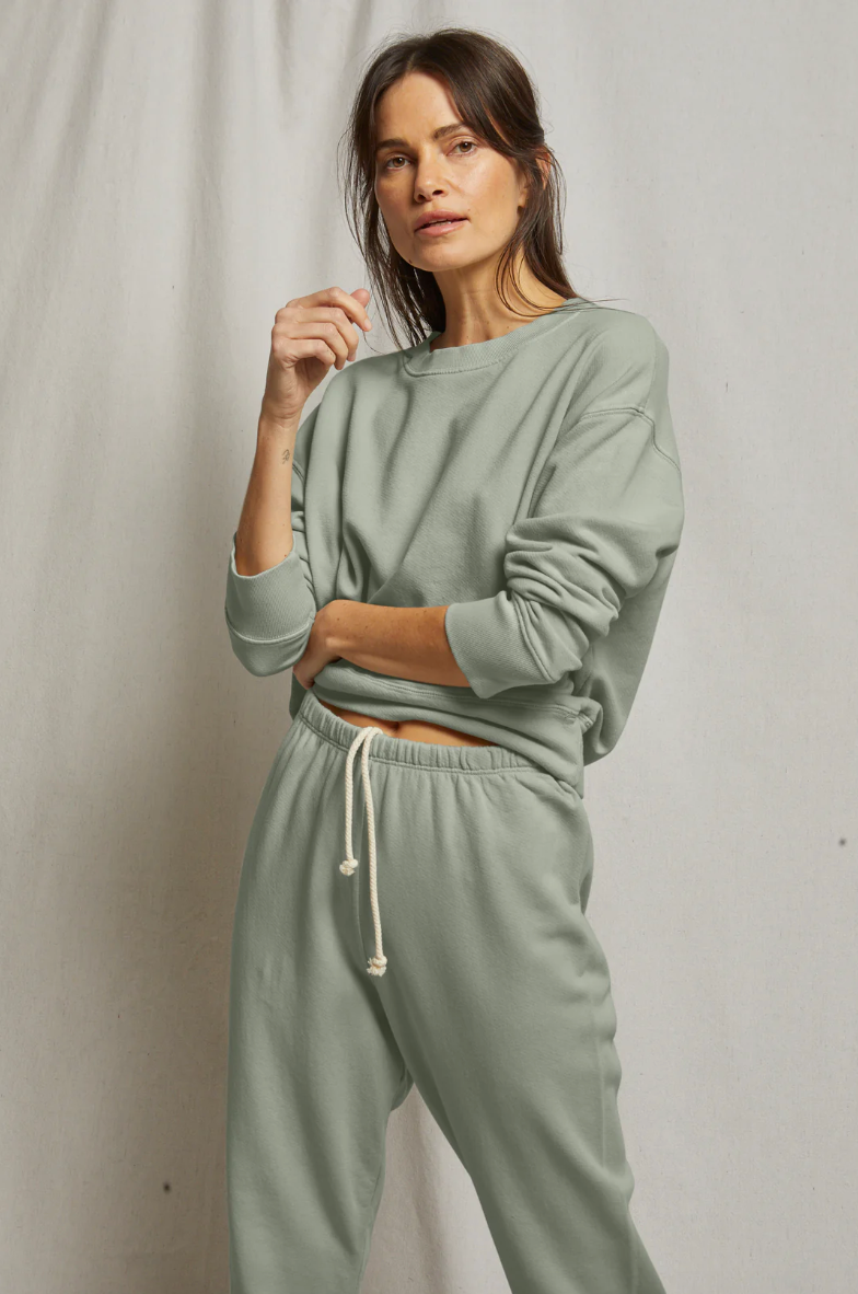drop shoulder and easy fit, our lightweight, relaxed vintage french terry creates the most coveted sweatshirt in your collection. it's super soft and plush with a classic sweatshirt fit that hits just below the waist.